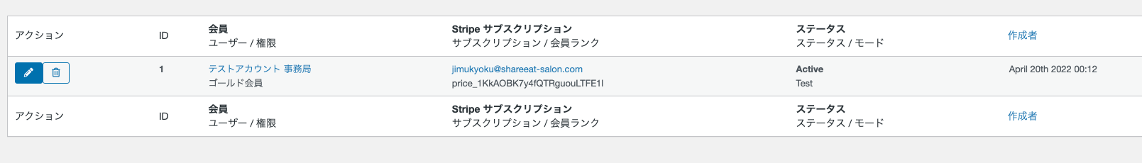 決済済み会員の一覧を表示し、編集、削除することが可能ですが、通常の管理運営でこちらの操作をすることはありません。